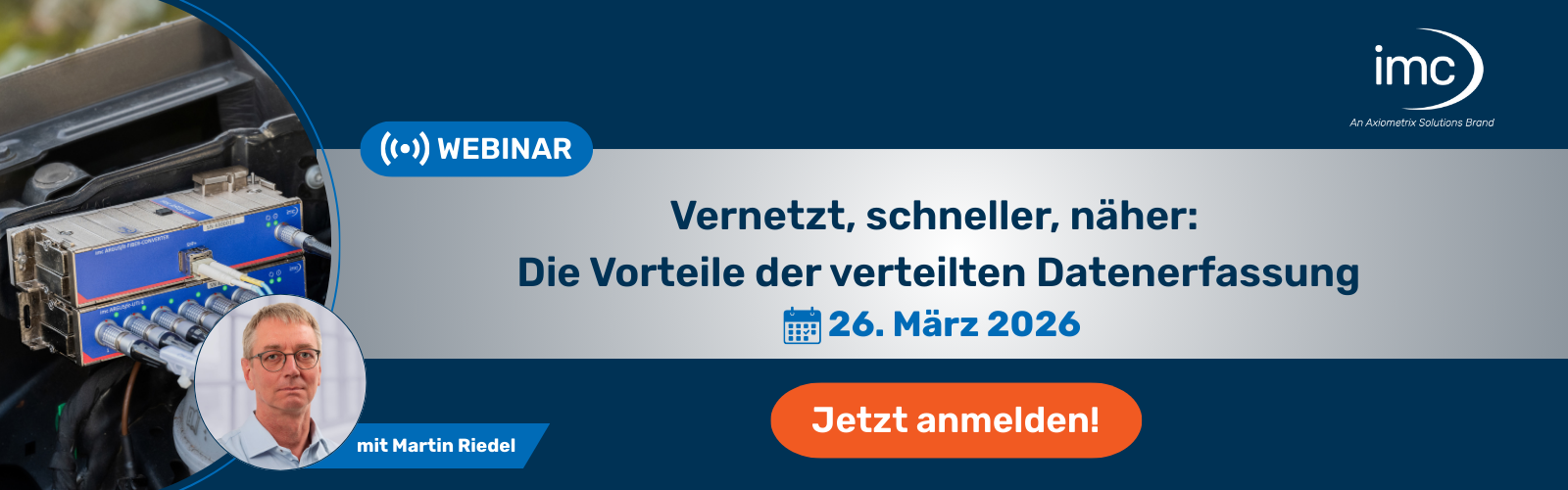 Seit 35 Jahren entwickelt, fertigt und vertreibt die imc Test & Measurement GmbH Messdatenerfassungssysteme und Prüfsysteme für Forschung, Entwicklung, Service und Produktion. Ob im Fahrzeug, an Maschinen und Anlagen oder in der Bahn- und Luftfahrtindustrie - täglich nutzen Anwender imc-Messgeräte, Softwarelösungen und Prüfstände, um Prototypen zu validieren, Produkte zu optimieren, Prozesse zu überwachen und Erkenntnisse aus Messdaten zu gewinnen. Rund um die imc DAQ-Geräte steht dafür ein umfassendes Dienstleistungsspektrum zur Verfügung, das von der Beratung bis zur kompletten Prüfstandsautomatisierung reicht. Auf diese Weise verfolgen wir konsequent das imc Leistungsversprechen „produktiv messen“.