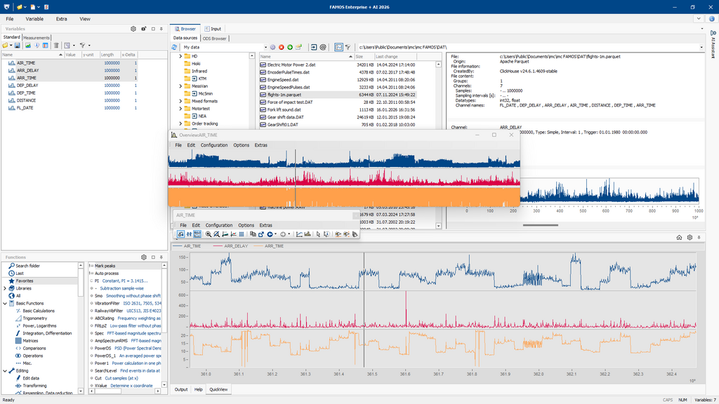 Hören Sie auf, mit Tools zu arbeiten, die nicht für technische Messdaten entwickelt wurden. FAMOS 2026 +AI vereint leistungsstarke Analyse, Visualisierung und Reporting in einem. Die Software für Test & Measurement bietet jetzt einen noch intelligenteren KI-Assistenten sowie native Unterstützung moderner Dateiformate und eine verbesserte Benutzerfreundlichkeit.