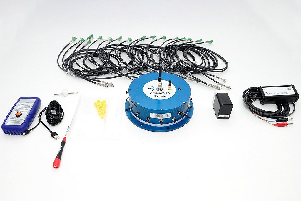 Das Telemetriesystem CTP-NT-Rotate ermöglicht die Erfassung, Aufbereitung und Übertragung von 8, 16, 32 oder 64 parallelen Messsignalen von rotierenden Maschinenteilen, Prüfständen, Rädern und Rotoren. Verschiedene Konfigurationen mit unterschiedlichen Sensormodulen sind verfügbar, inkl. Signalaufbereitung für DMS, Thermoelemente Typ K (TH-K), ICP-Sensoren, Potentiometer (POT), LVDT- / RVDT-Sensoren und auch Spannungseingänge. Gemischte Konfigurationen sind möglich (in 2-Kanal-Gruppen). Die integrierte Akkumulatoreinheit ermöglicht eine einfache und schnelle Installation der Telemetrie. Das wetterfeste, für die Freiluftanwendung (IP65) ausgelegte System, ermöglicht Datenübertragungen über Distanzen von bis zu 20 Metern im Freifeld.